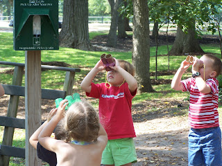 We had a "B" play date at the park today. The girls painted binoculars and then we walked around and found different B items that had been hidden around the park.